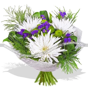 С любовью и нежностью - букет из кустовых хризантем, роз и альстромерий