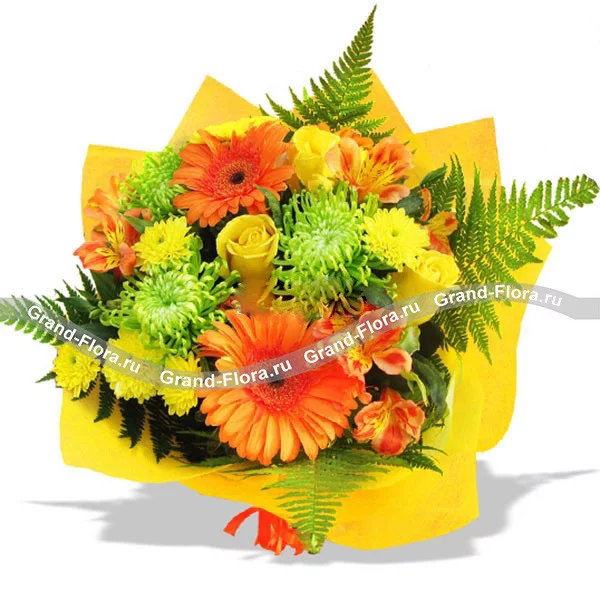 Яркая, насыщенная страстью и светом цветовая палитра из гербер, роз и хризантем, великолепно подойдет для подарка, как мужчине, так и женщине, когда чувства осмысленны, проверены и так же свежи, как в первый день! Сделает самый обычный день лучшим!